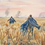 Dann plötzlich ein Schnauben, so laut und so präsent, dass Eva spürte, wie warme Luft über ihre Haut streifte. Ein erdiger Geruch wehte zu ihr herüber. Die Ähren vor ihnen, nur wenige Schritte entfernt, bogen sich massiv zur Seite, als hätte sich etwas Enormes hindurchgedrängt. Eva und Lennar starrten – und sahen doch nichts. Dann war es plötzlich vorbei. Das Rascheln entfernte sich. Das Brummen verebbte. Das Atmen – weg. So schnell, wie es gekommen war, war es wieder verschwunden, so vollständig, als hätte sich ein Vorhang zugezogen. Was blieb, war eine Schneise umgedrückter Ähren und das Knacken der Halme, die sich langsam wieder aufrichteten.