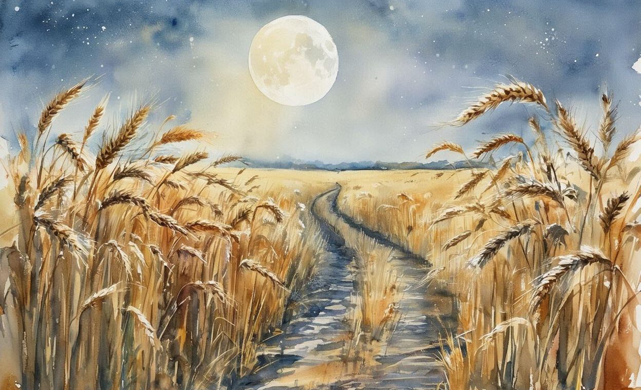 Doch dieser Wunsch sollte sich nicht erfüllen, denn auch in den nächsten Siedlungen hatten sie kein Glück. Der Landstrich war vollständig verlassen. Mittlerweile hockte der Vollmond in den Wolken und goss sein bleiches Licht auf die Straße, die sich wie ein silberner Faden vor ihnen durch die Felder schlängelte. Die Schatten zwischen den Ähren waren tiefschwarz und undurchdringlich. Das Brausen des Windes schwoll an – oder war es überhaupt noch der Wind? Mit einem Mal lag etwas anderes darin, etwas, das unter dem Rauschen lauerte wie eine zweite Stimme. Eva hielt den Atem an, ihr Herz schlug plötzlich schneller und an der Art, wie er seinen Stab umklammerte, wusste sie, dass auch Lennar es bemerkt hatte. Das Rascheln kam aus der Tiefe der Halme, sie wurden zur Seite gedrückt – nicht sanft, nicht wie ein Luftzug, sondern mit einer zielgerichteten Kraft. Nun sah man eine deutliche Spur, die sich zügig durch das Getreide bewegte. War es ein Tier? Für ein Reh oder einen Kornfuchs war die Schneise viel zu groß, die das Wesen hinterließ. Dann hörten sie es deutlich: ein Atmen. Hechelnd. Wie ein Blasebalg, der Glut anfachte. Es kam direkt auf sie zu.