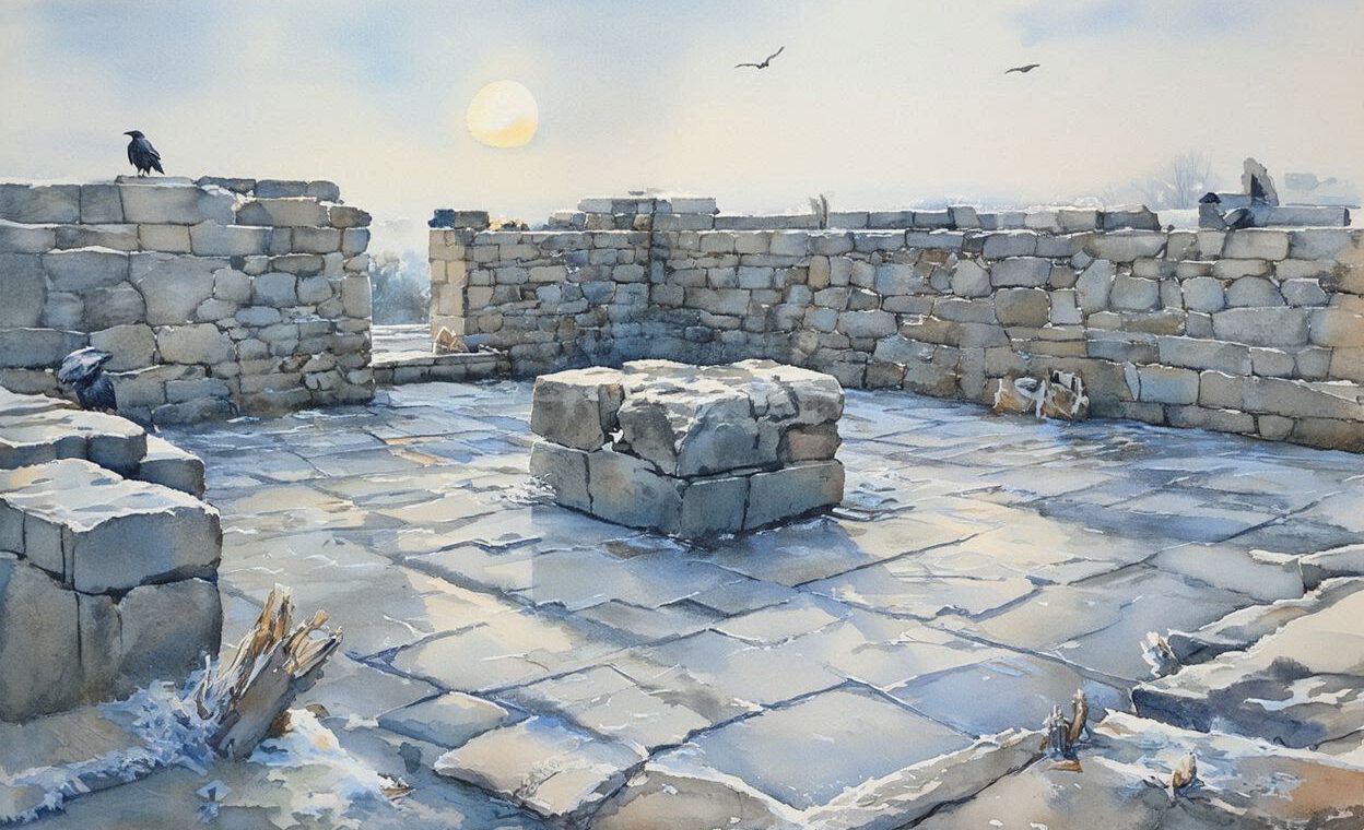 Eva stand allein auf dem Steinboden der alten Richtstätte. Ihr Herz schlug schnell. Der Wind legte ihr eine blonde Strähne ins Gesicht und darunter huschte eine heimliche Träne ihre Wange hinab.
