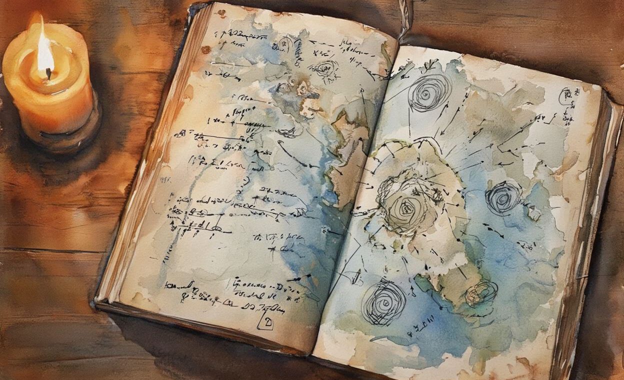 Die ersten Seiten waren dennoch schwer zu lesen – die Schrift verblichen, manche Absätze waren mit Anmerkungen versehen, die von späteren Lesern zeugten. Aber dann stieß Finn auf eine Passage, die mit aufwendigen Illustrationen verziert war. Lange Pfeile, die Windrichtungen andeuteten, Wirbelformen, die um eine stilisierte Wolkeninsel herum gezeichnet waren. „Hier“, sagte er. „Das könnte spannend sein. Das ist eine Beschreibung der Bedingungen auf der nördlichen Insel Hochsaat.“ Corwin lehnte sich vor und tippte auf einen der Pfeile. „Stimmt, das sind Beschreibungen der vertikalen Zirkulation. Vesper unterschied zwischen dem primären Windfeld – das sind die großen, überlagernden Strömungen – und dem sekundären Feldmuster.“ „Die induzierte Strömung“, murmelte Finn und zeigte auf eine Notiz am Rand. „Das hat ja hier jemand später hinzugefügt. Mit Bleistift. Das ist höchstens fünfzig Jahre alt.“ Eva folgte mit den Augen der Textstelle, auf die ihr Freund deutete. Darin wurde eine Besonderheit beschrieben: ein Phänomen, bei dem sich unter bestimmten Bedingungen – wenn die großräumige Strömung auf ein Hindernis oder eine Unregelmäßigkeit der Landform stieß – zusätzliche Wirbelzonen bildeten. Wirbel, die den Hauptstrom nicht schwächten, sondern verstärkten. Eva lehnte sich zurück, sie verstand rein gar nichts. Die Fachsimpelei der beiden Männer verschwamm in ihren Ohren zu einem undefinierten Brei.