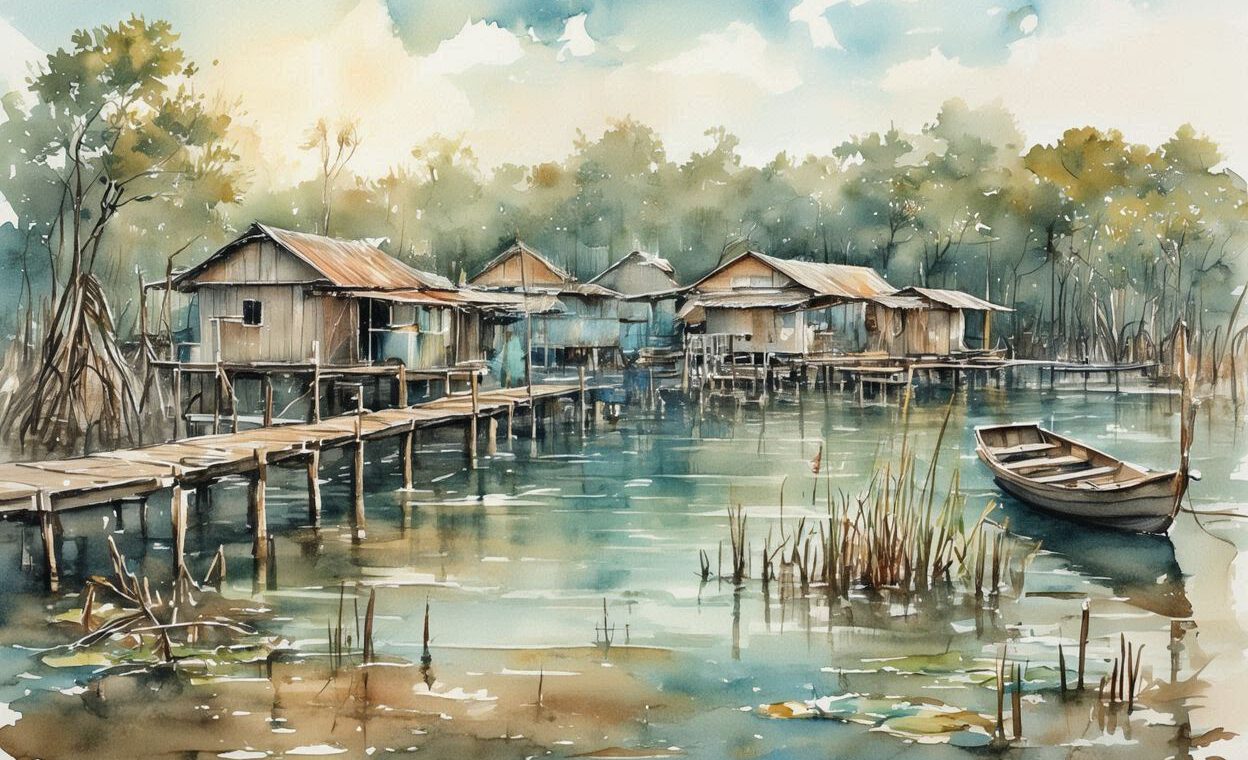 Der Boden unter Airis’ Stiefeln gab bei jedem Schritt leise nach. Dunkles Wasser schimmerte zwischen den Wurzeln großer Bäume, und der Mangrovenwald schloss sich wie ein feuchter Vorhang um den schmalen Pfad, auf dem ihr der Kartograph voranging. Die Luft war schwer, warm und roch modrig. Moskitos tanzten in dichten Schwärmen, ihr lästiges Summen lag in der Luft wie ein dünner Schleier.