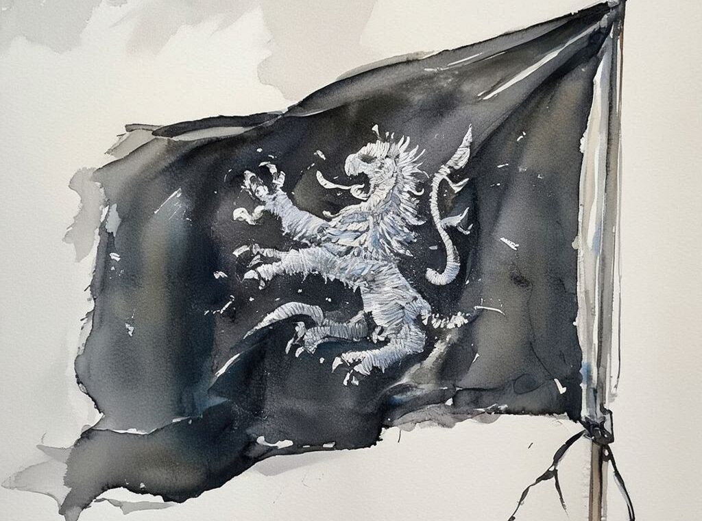 „Bitte entschuldigt, Großmeisterin. Aber wenn man sich schon so ein Tier auf die Fahne malt, sollte das wenigstens halbwegs was hermachen. Da sieht ja jeder Wischlappen von den Sturminseln besser aus.“ Eva sah weiter auf das flatternde Tuch hinaus und obwohl Lennar weiterredete, hörte sie ihn kaum. Irgendetwas an diesem Wappen sandte ihr ein Prickeln über die Haut.