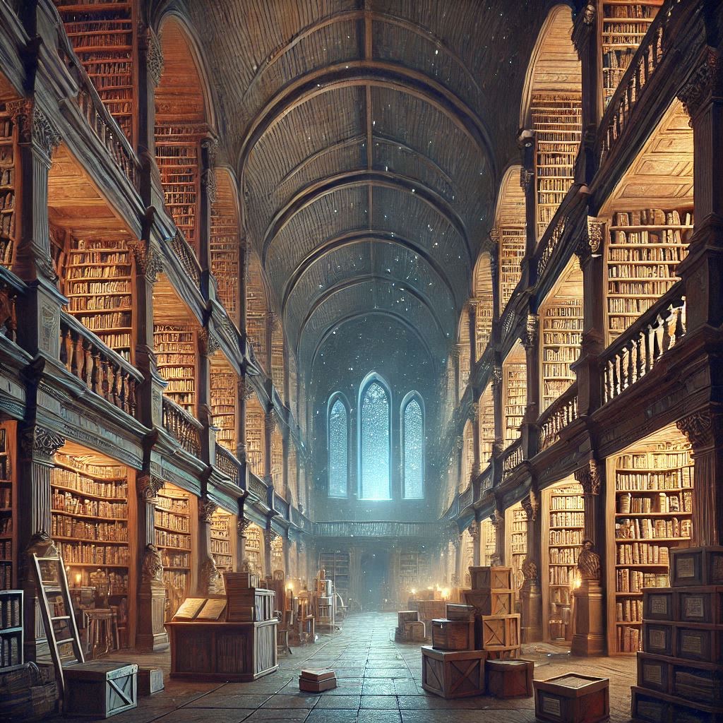 Das Archiv war ein gewaltiges Gewölbe, dessen Ausmaße den Gästen den Atem verschlugen. Über drei Etagen, zu denen dünne Holzleitern führten, stapelten sich Bücher.